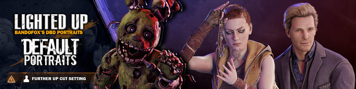 - Further Up Cut containing portraits and store backgrounds set up for DBD, in cut that shows more of a character